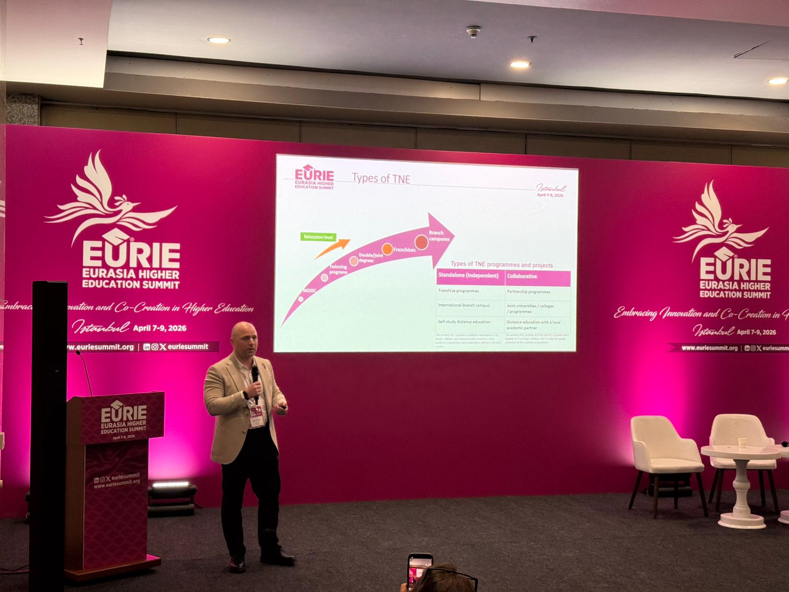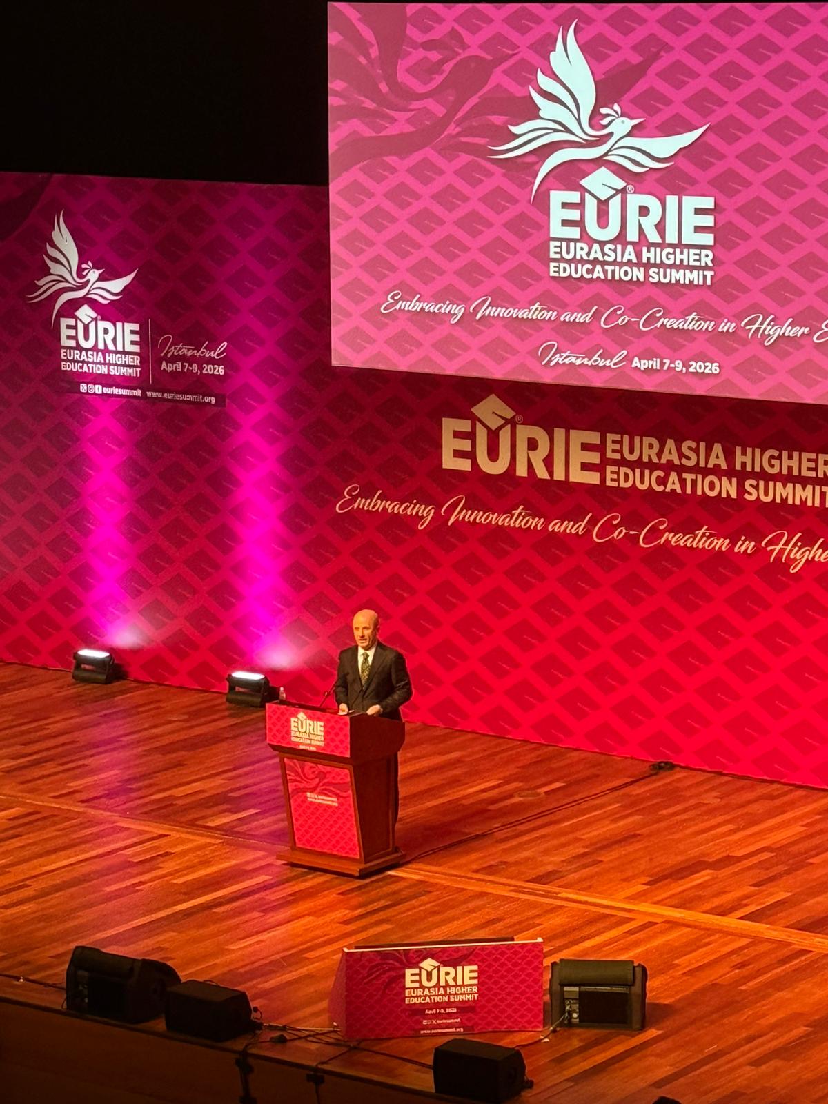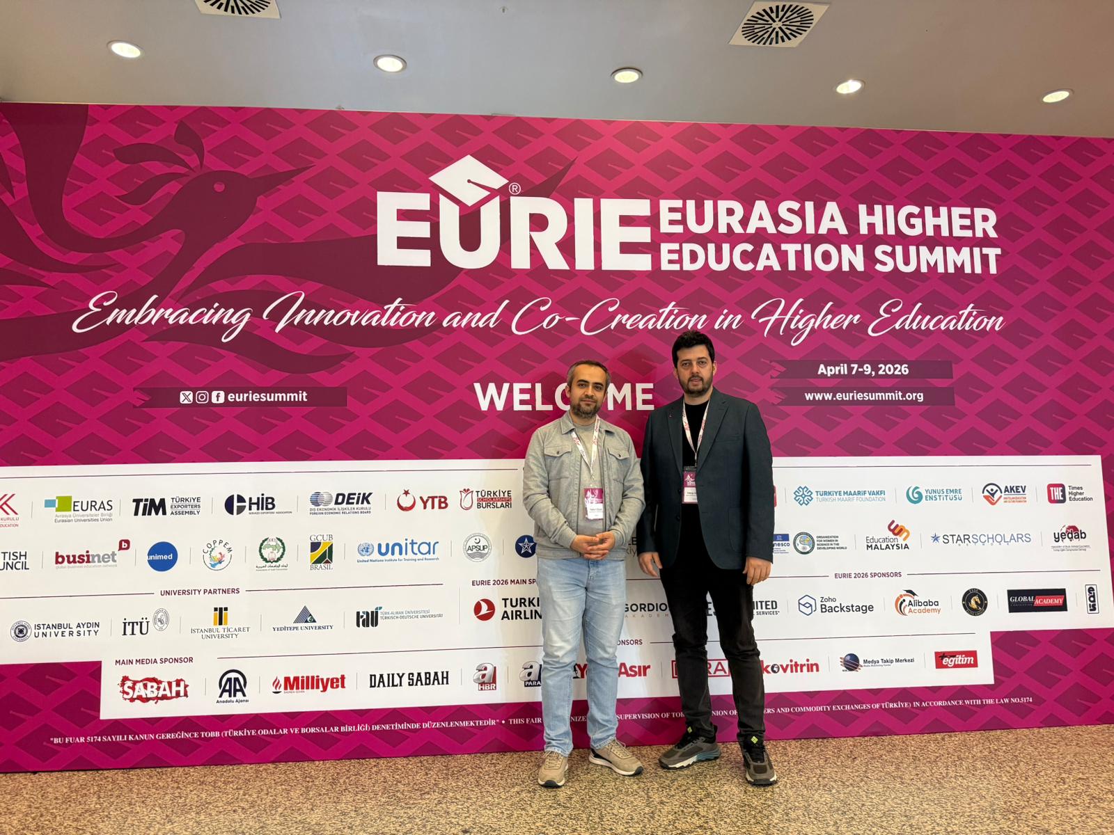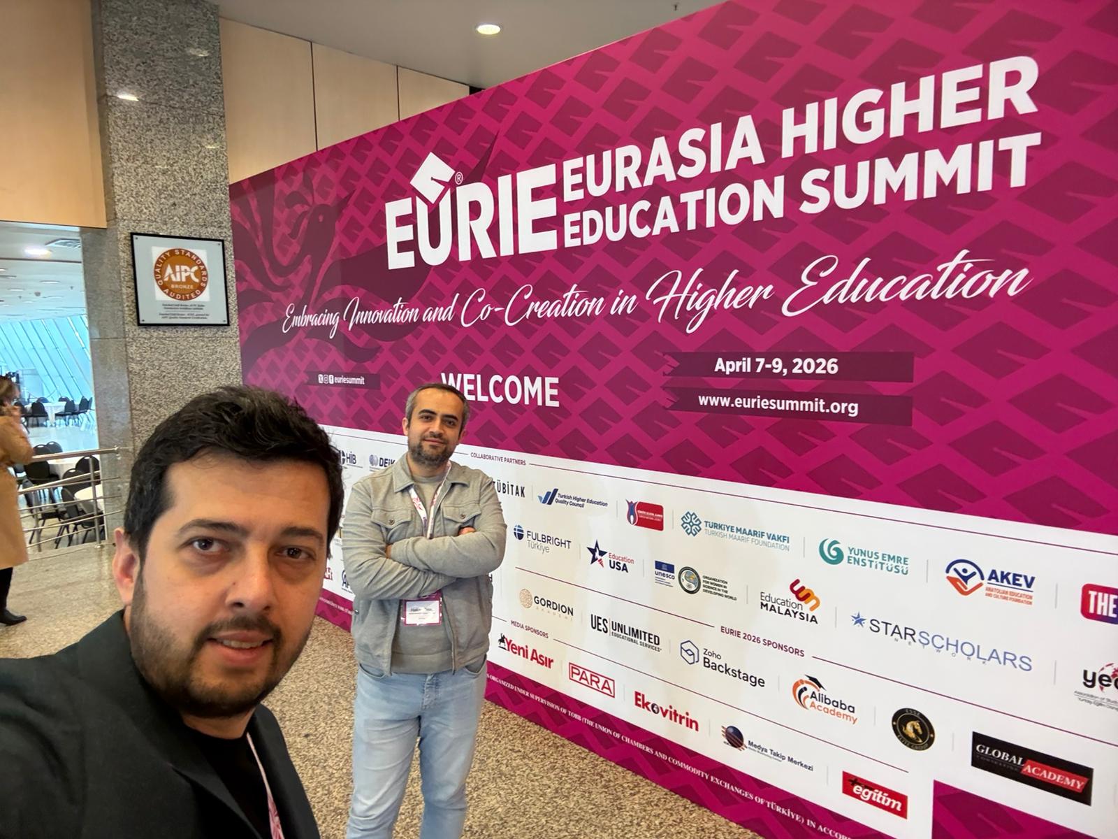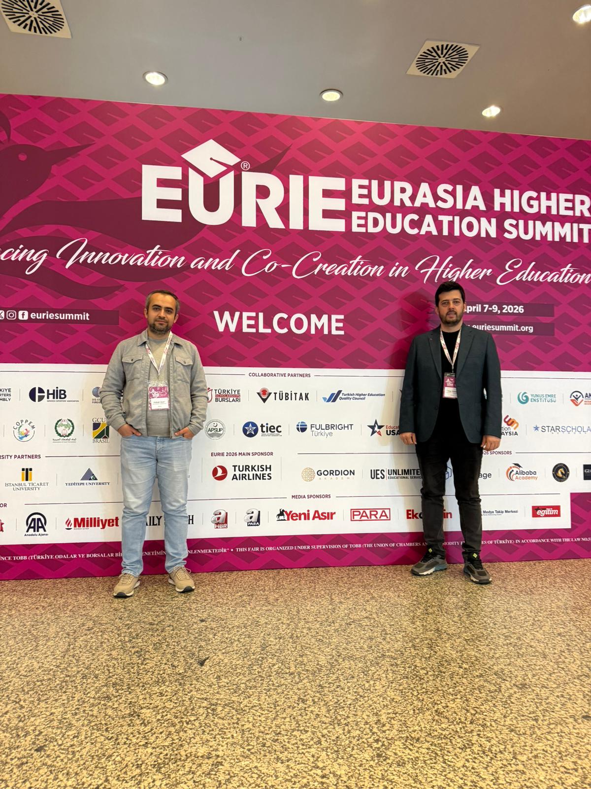 7-9 Nisan 2026 tarihleri arasında gerçekleşen EURIE 2026 Avrasya Yükseköğretim Zirvesi'nde ISUBÜ rüzgarı esti. Uluslararası İlişkiler Ofisimizden Öğr. Gör. Yakup SÖNMEZ ve Öğr. Gör. Dr. Hakan OZAN, yoğun geçen oturumlar ve fuar ziyaretleri ile üniversitemizi en iyi şekilde temsil etti.